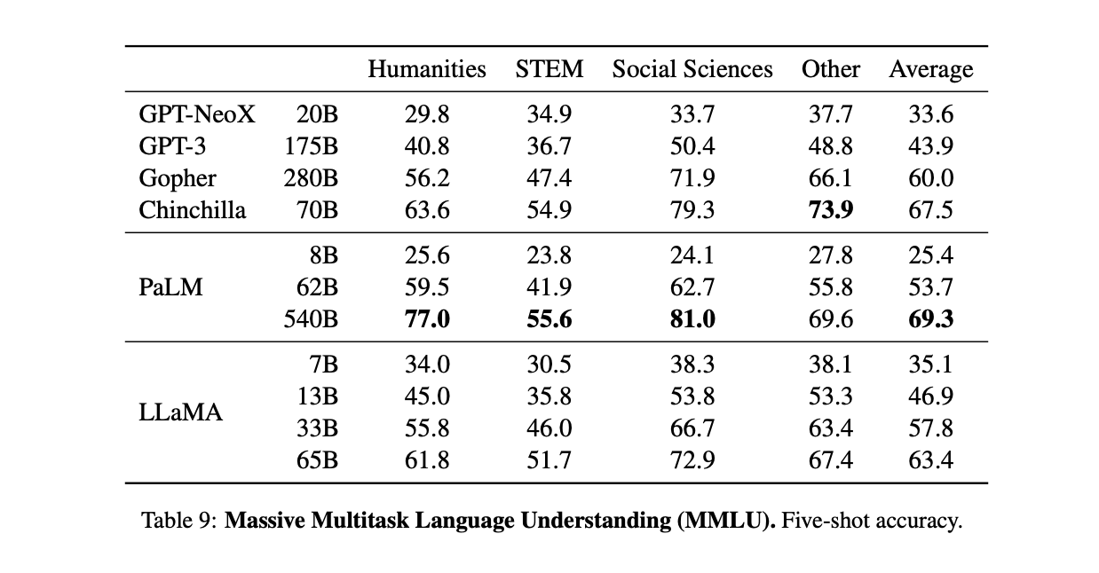 - LLaMA-65B는 GPT-3보다 더 우수하지만 Chinchilla와 PaLM에 비해 떨어지는 벤치마크 결과를 보인다.